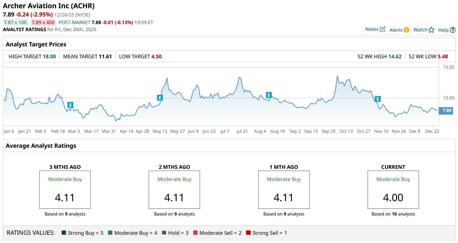 The consensus rating on ACHR shares currently sits at “Moderate Buy” with the mean target of $11.61 indicating potential upside of more than 45% from here.