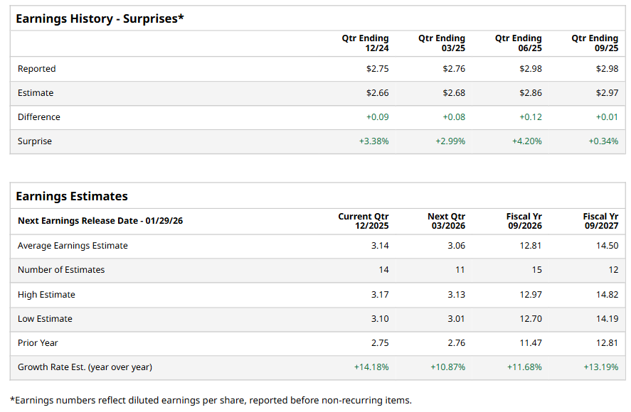Visa Inc. (V), headquartered in San Francisco, California, operates a retail electronic payments network and manages global financial services. Valued at $646.7 billion by market cap, the leading digital payments company also offers global commerce by transferring value and information among financial institutions, merchants, consumers, businesses, and government entities. The digital payments giant is expected to announce its fiscal first-quarter earnings for 2026 in the near future.