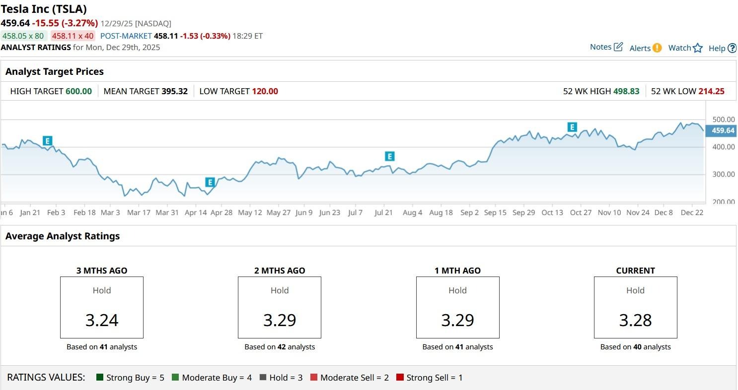 The consensus rating on TSLA shares currently sits at “Hold” only with the mean target of about $395 indicating more than 13% downside potential from here.
