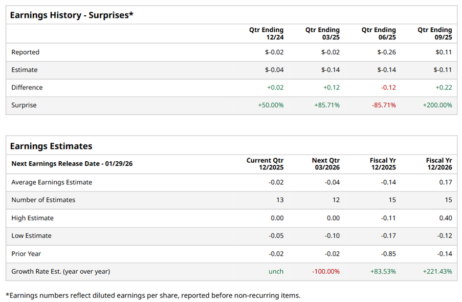 Santa Clara, California-based Intel Corporation (INTC) designs, develops, manufactures, markets, and sells computing and related products and services worldwide. Valued at $175.2 billion by market cap, the company's major products include microprocessors, chipsets, embedded processors and microcontrollers, flash memory, graphics, network and communication, systems management software, conferencing, and digital imaging products. The leading chipmaker is expected to announce its fiscal fourth-quarter earnings for 2025 in the near future.