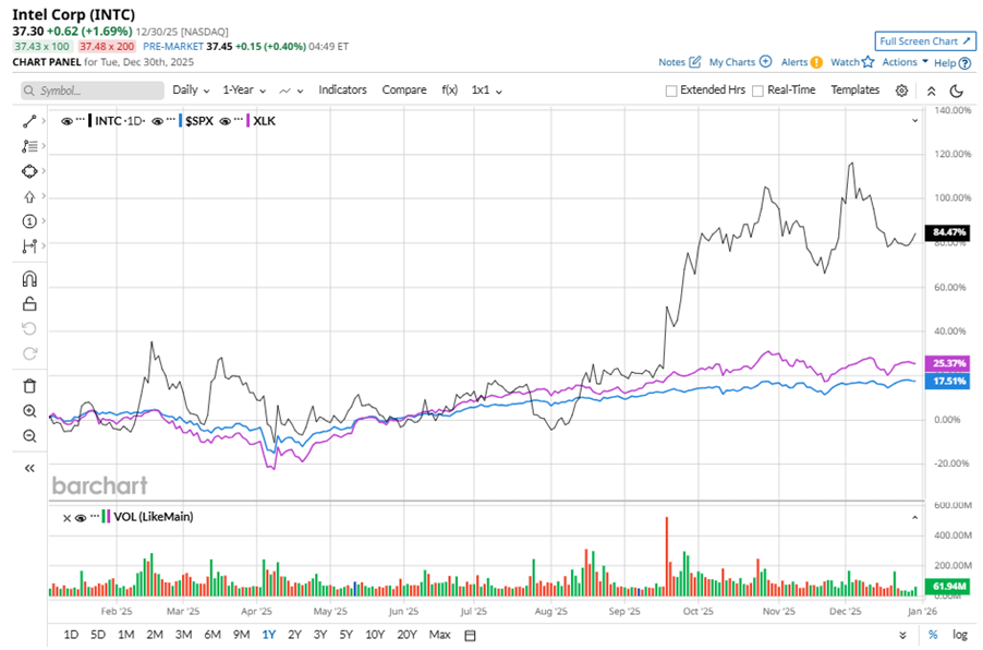 INTC stock has outperformed the S&P 500 Index’s ($SPX) 16.8% gains over the past 52 weeks, with shares up 88.2% during this period. Similarly, it outperformed the Technology Select Sector SPDR Fund’s (XLK) 24% returns over the same time frame.