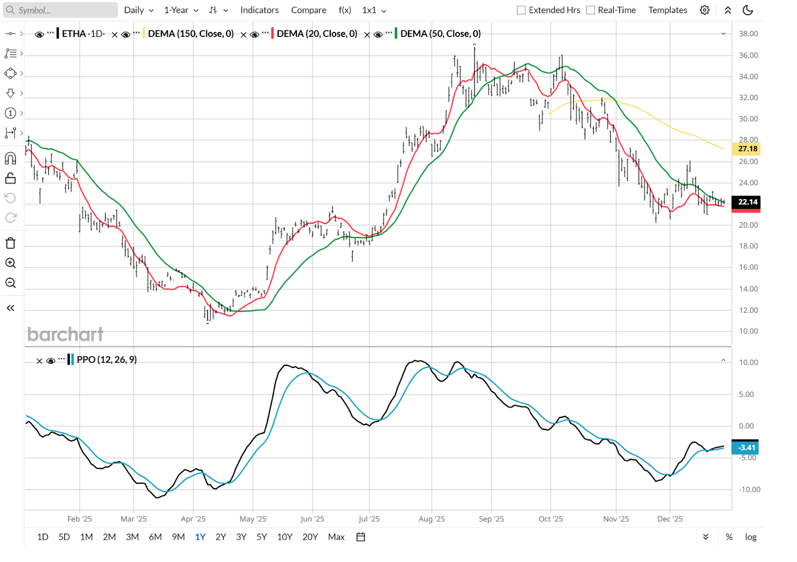 ETHA may just be resting here, and I’m going to assume that the December 2027 expiration is still my preference, for this updated look at where a new collar might be set up.