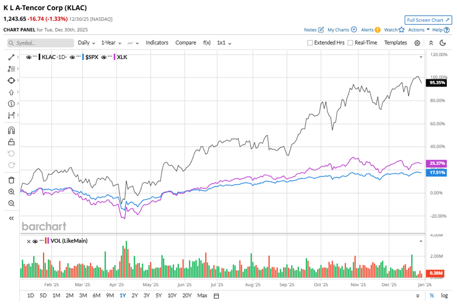 KLAC stock has outperformed the S&P 500 Index’s ($SPX) 16.8% gains over the past 52 weeks, with shares up 96.3% during this period. Similarly, it outperformed the Technology Select Sector SPDR Fund’s (XLK) 24% returns over the same time frame.