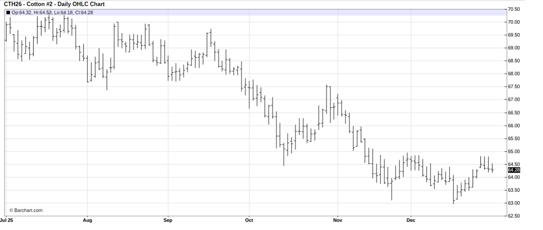 March cotton futures (CTH26) present a selling opportunity on more price strength.