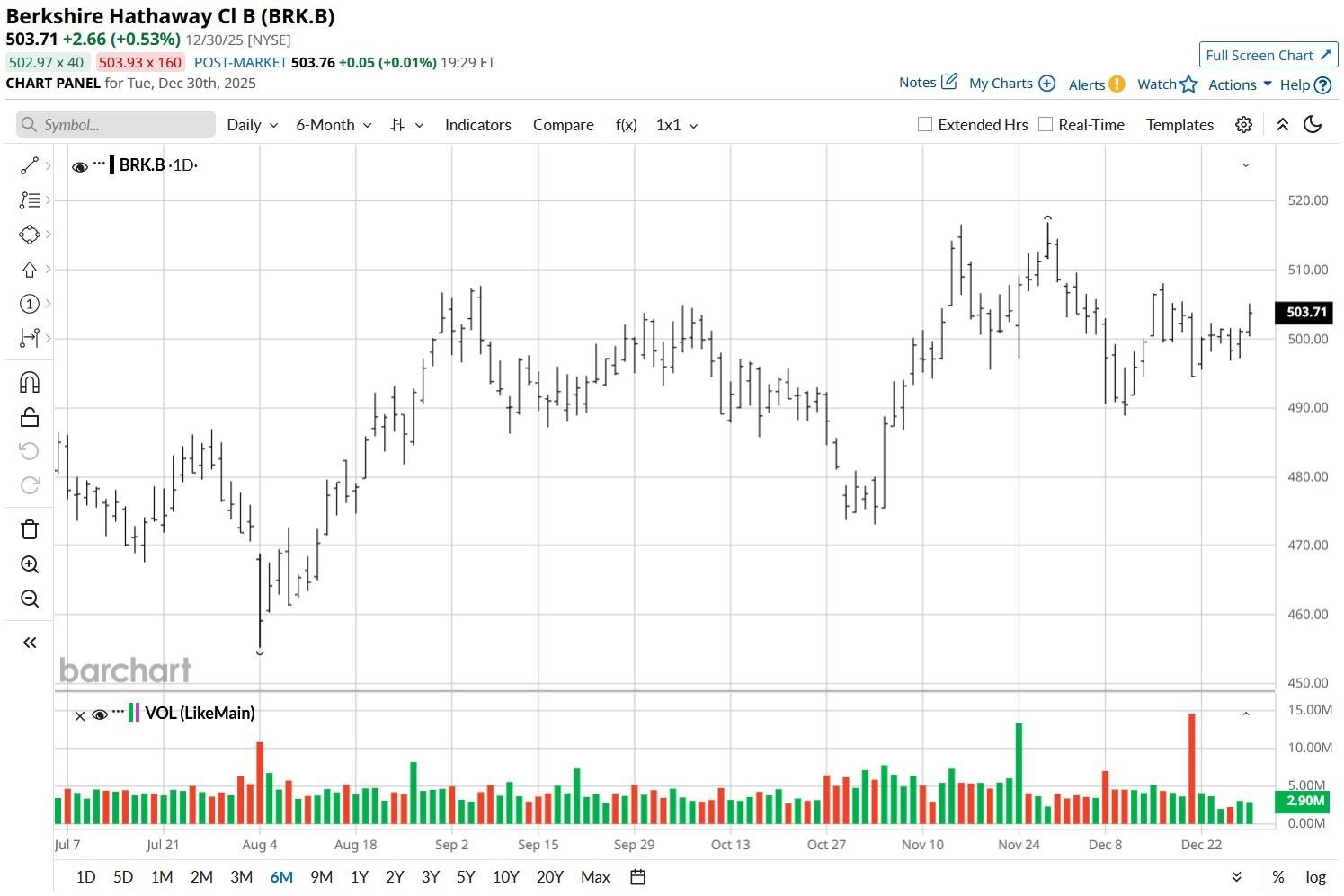 Berkshire Hathaway (BRK.A) (BRK.B) stock remained subdued in the back half of 2025 as markets digested the surprise announcement of Warren Buffett’s departure as chief executive on Dec. 31.