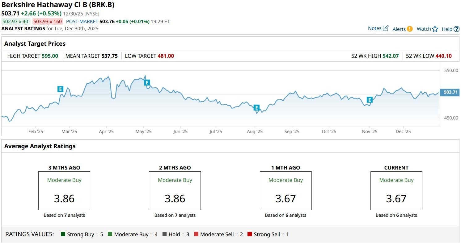 What’s also worth mentioning is that Wall Street analysts remain positive on BRK.B stock heading into 2026.