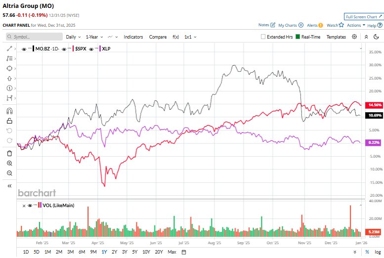 Over the past 52 weeks, MO shares have climbed 10.8%, underperforming both the S&P 500 Index’s ($SPX) 16.4% return but outpacing the Consumer Staples Select Sector SPDR Fund’s (XLP) marginal fall during the same time frame.
