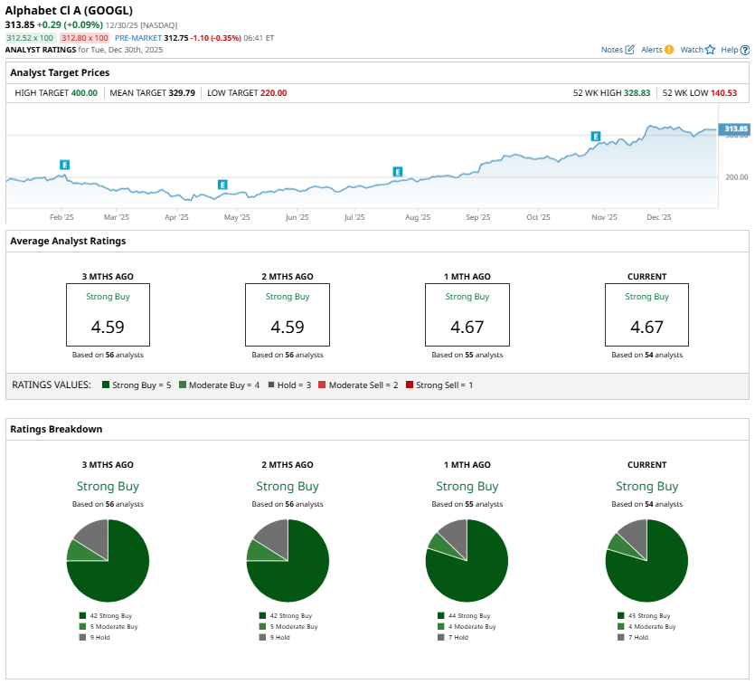 Even after the stock’s strong rally, analysts continue to favor Alphabet, with GOOGL carrying a “Strong Buy” consensus rating. This reflects Wall Street’s confidence in the company’s AI-led strategy.