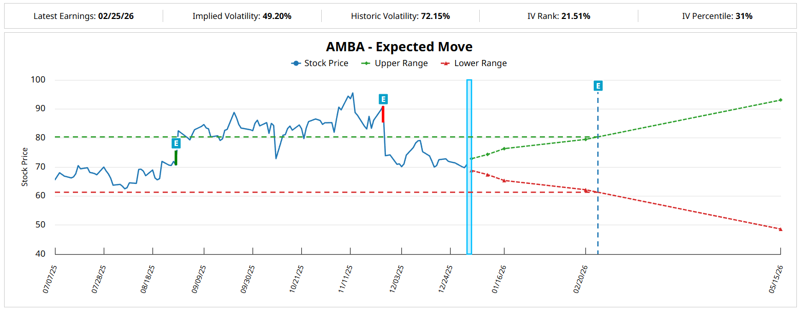 Still, the pensiveness toward AMBA stock could present an opportunity for contrarian options traders. Right now, Barchart’s Expected Move calculator pegs the forward dispersion for the Feb. 20 expiration date as landing between $62.17 and $79.51. In magnitude terms, AMBA is expected to swing 12.24% in either direction relative to the current anchor price.