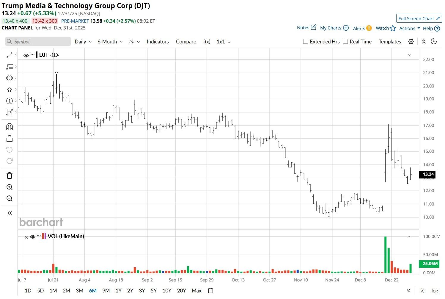 DJT shares were a volatile investment in 2025. At the time of writing, they are down roughly 33% versus their July high.