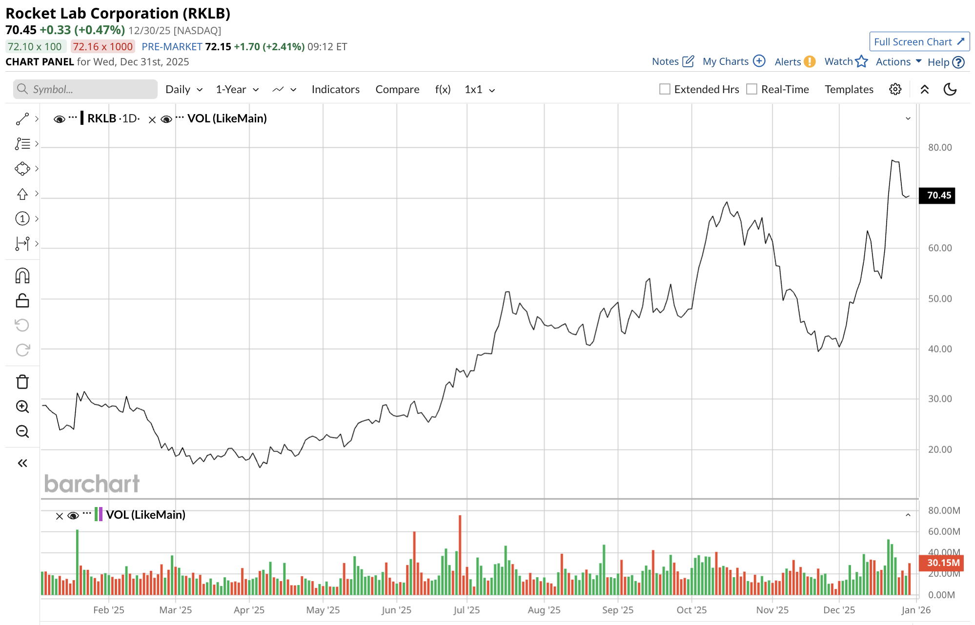 Rocket Lab is an end-to-end space company specializing in small satellite launches via its Electron rocket, while also building spacecraft and components for various missions. As of the end of 2025, it has conducted over 79 successful launches since its debut in 2017 – 21 this year alone -- establishing a track record of reliability in deploying payloads for clients like NASA and private firms.