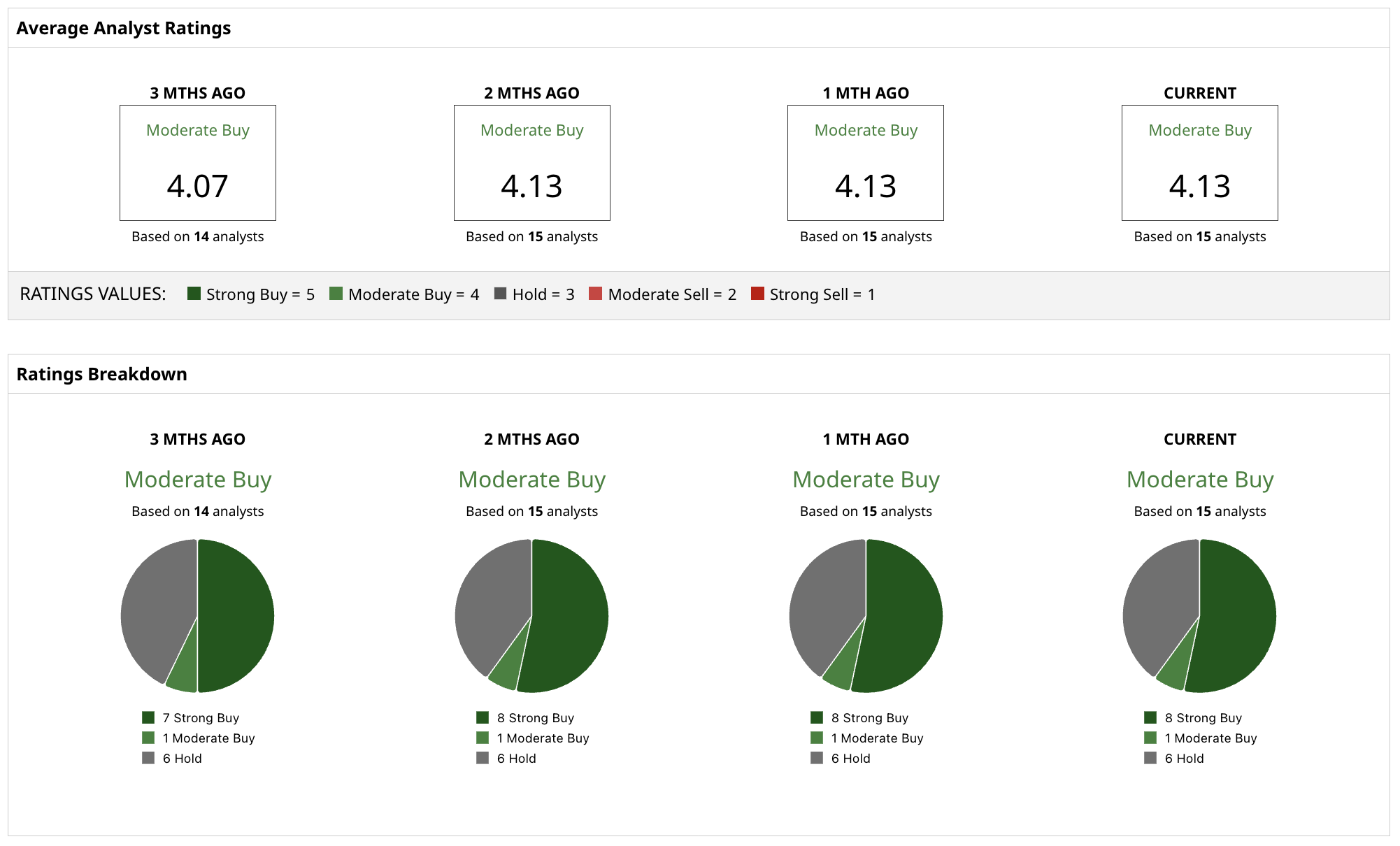 Analysts maintain a positive outlook on Rocket Lab stock, with a consensus rating of “Moderate Buy” based on coverage from 15 analysts, breaking down to eight “Strong Buy” recommendations, 1 “Moderate Buy,” and six “Holds,” with no “Sells.” This reflects confidence in the company’s execution during the space sector’s expansion. In recent months, there have been no major shifts in consensus, though some upgrades followed strong quarterly results and backlog growth, signaling steady sentiment without volatility.