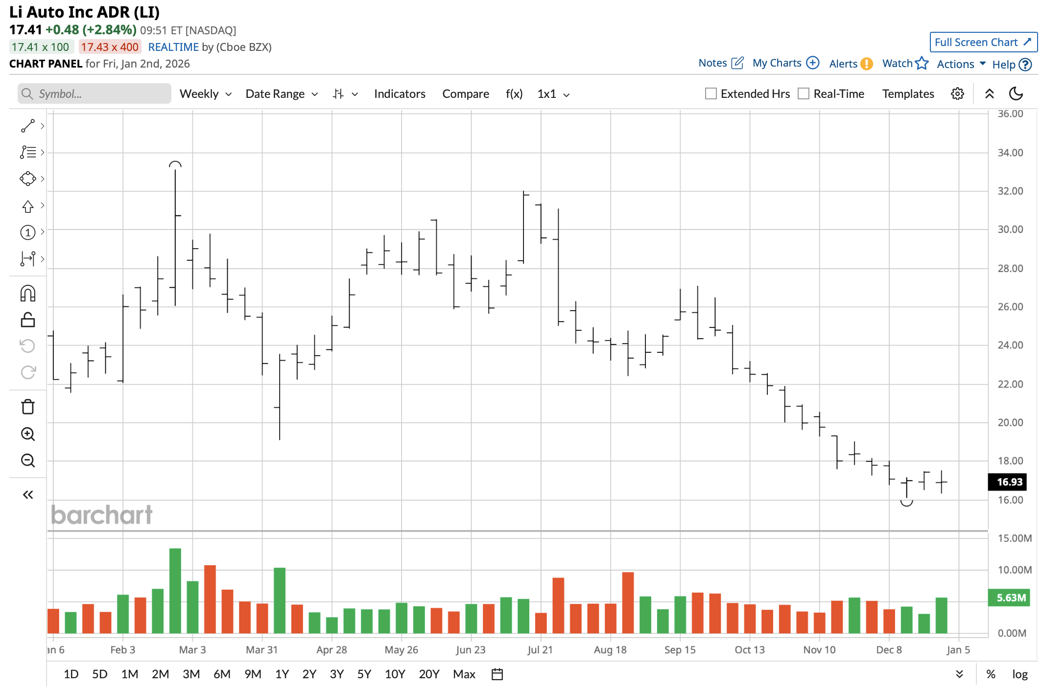 From a performance perspective, Li Auto shares have been finding it difficult to find their footing. The current trading price of the shares is around $17.40, which is closer to the lower end of the 52-week range of $16.11 to $33.12.
