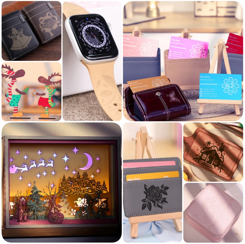 Designed for designers and precision craft enthusiasts, the Nano Pro is a compact desktop solution that balances aesthetics and performance, perfect for creative spaces where precision matters but space is limited. Its fast engraving capabilities transform low-cost materials into high-value creations—from personalized watch straps and uniquely designed cardholders to custom engravings on Christmas lights, cutting boards, and jewelry boxes.