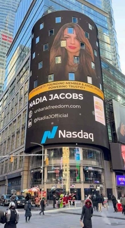 On 12 December 2025, Nadia brought her vision to a global audience where she was featured on NASDAQ’s iconic billboard in Times Square, New York. Representing SXT Society and the bankless solutions she champions. This milestone highlights her commitment to decentralised innovation and her drive to empower individuals and organisations worldwide.