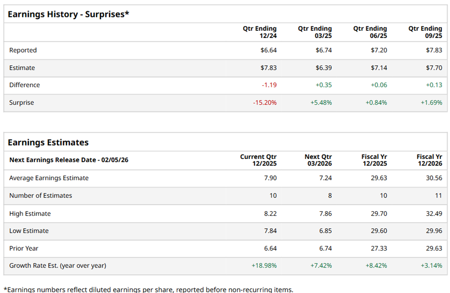 For the full year, analysts expect CI to report EPS of $29.63, up 8.4% from $27.33 in fiscal 2024. Its EPS is expected to rise 3.1% year over year to $30.56 in fiscal 2026.