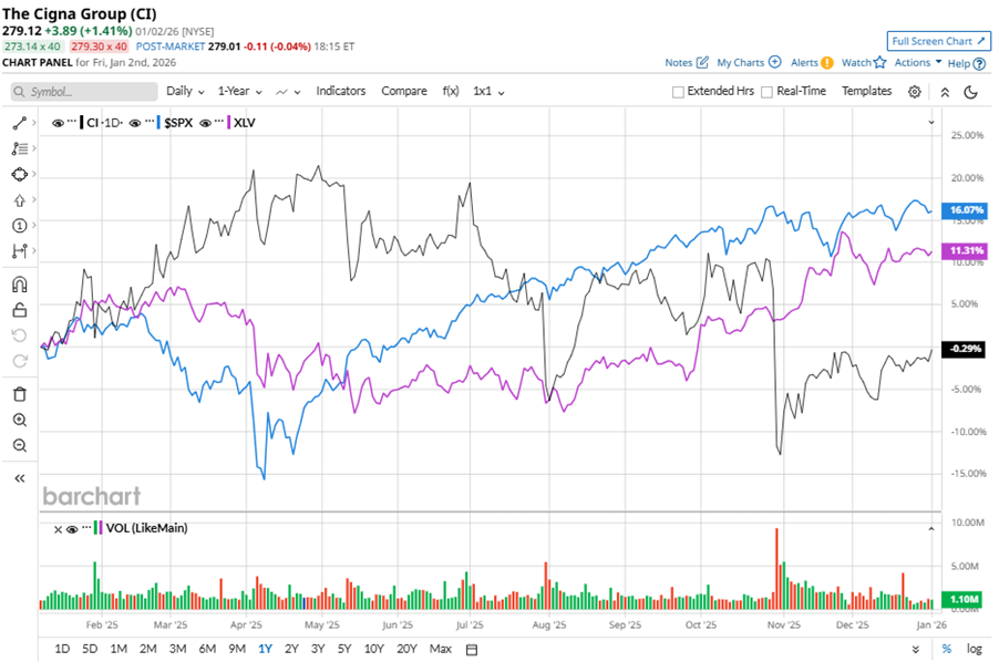 CI stock has underperformed the S&P 500 Index’s ($SPX) 16.9% gains over the past 52 weeks, with shares up 1.7% during this period. Similarly, it underperformed the Health Care Select Sector SPDR Fund’s (XLV) 13% returns over the same time frame.