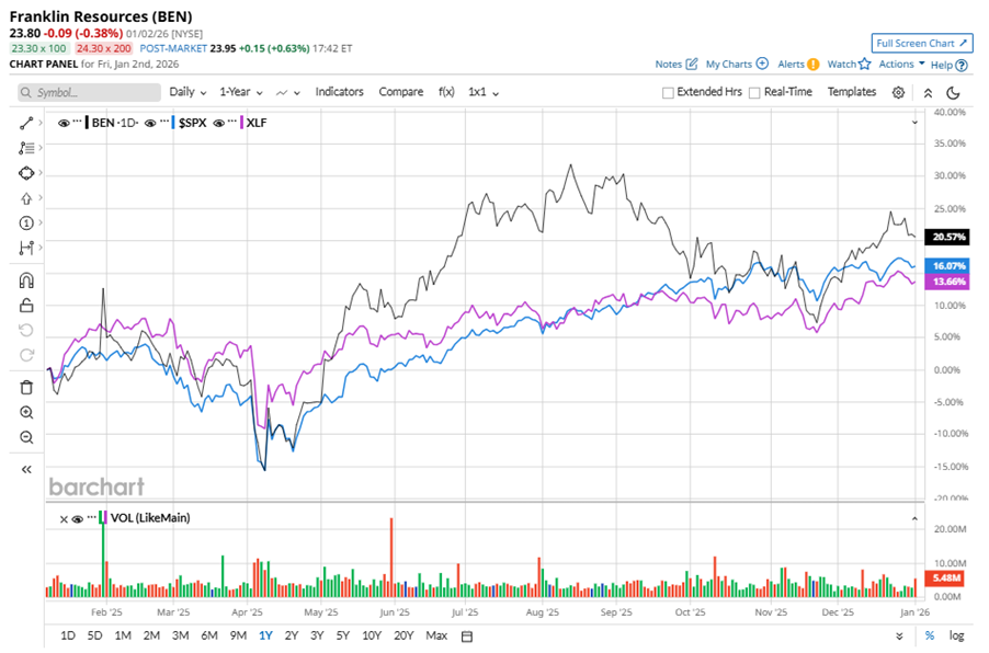 BEN stock has outperformed the S&P 500 Index’s ($SPX) 16.9% gains over the past 52 weeks, with shares up 18.2% during this period. Similarly, it outperformed the Financial Select Sector SPDR Fund’s (XLF) 13.9% gains over the same time frame.