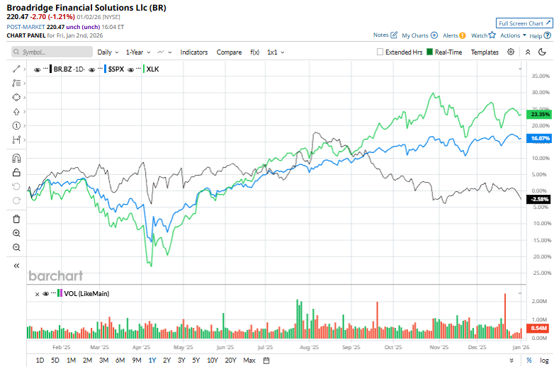 Broadridge’s stock prices dipped 2.8% over the past 52 weeks, notably lagging behind the S&P 500 Index’s ($SPX) 16.9% gains and the Technology Select Sector SPDR Fund’s (XLK) 24.4% surge during the same time frame.