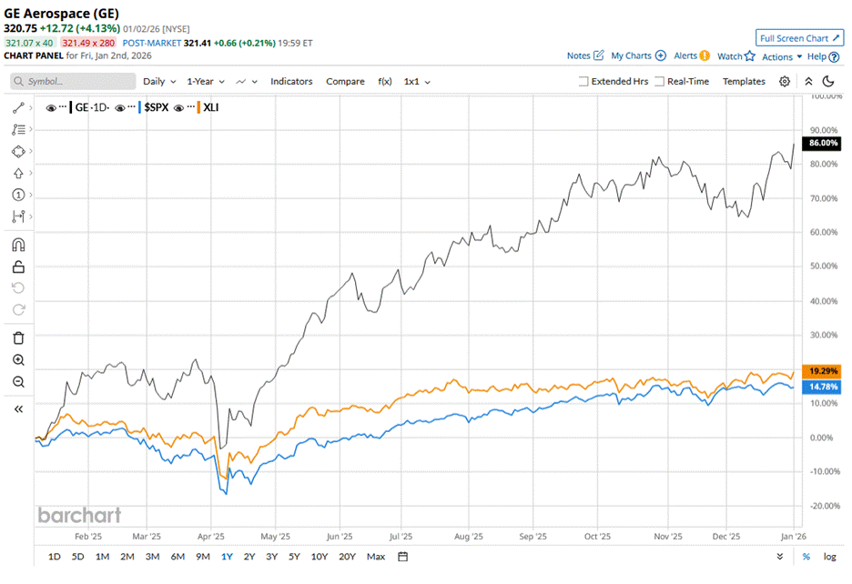 GE stock has outperformed the S&P 500 Index’s ($SPX) 16.9% gains over the past 52 weeks, with shares up 90.3% during this period. Similarly, it outperformed the State Street Industrial Select Sector SPDR ETF’s (XLI) 20.3% gains over the same time frame.