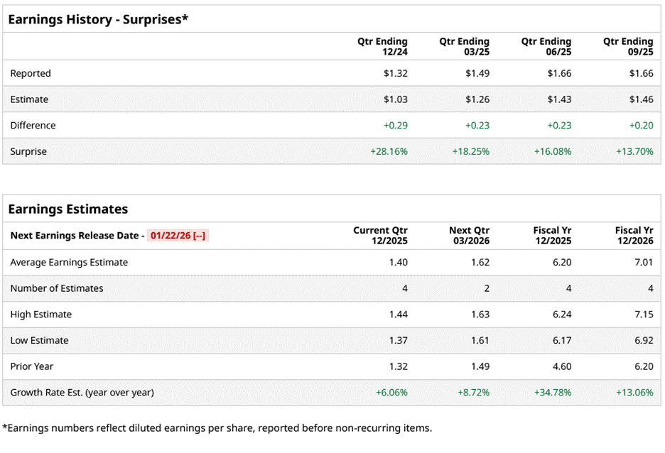 Founded in 1892, Evendale, Ohio-based GE Aerospace (GE) designs and produces commercial and defense aircraft engines, integrated engine components, electric power, and mechanical aircraft systems. The company’s market cap is around $338.3 billion. The company is expected to announce its fiscal fourth-quarter earnings for 2025 on Thursday, Jan. 22.