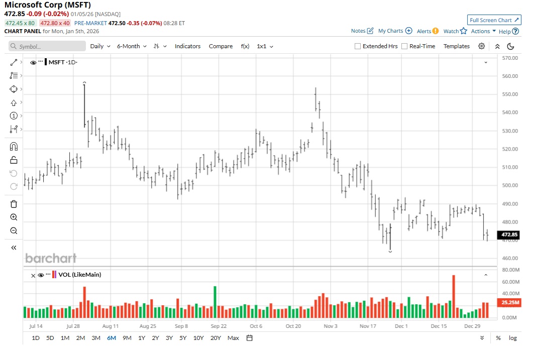 Amidst volatility, MSFT stock has trended higher by 10.5% in the past 52 weeks. The relatively muted price action provides an opportunity to buy.