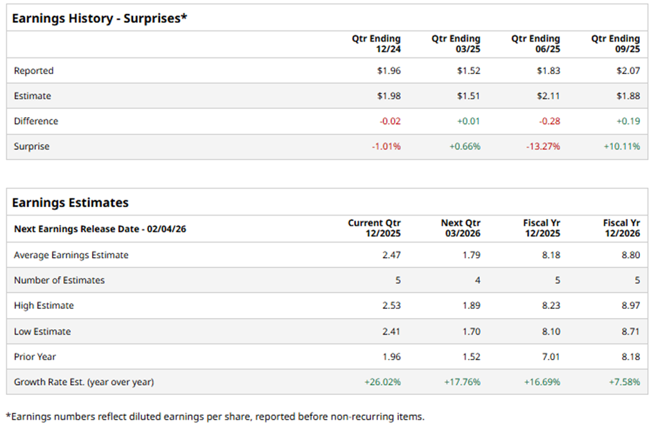 The Tempe, Arizona-based company is expected to unveil its fiscal Q4 2025 results after the market closes on Wednesday, Feb. 4. Ahead of the event, analysts forecast ALGN to post a profit of $2.47 per share, a growth of 26% from $1.96 per share in the same quarter last year. It has surpassed Wall Street's bottom-line projections in two of the past four quarters while missing on two other occasions.