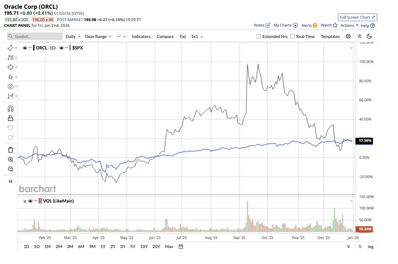 ORCL stock closed 2025 with a 17% gain compared to the broader market gain of 16%. Its recent fiscal second quarter results showed clear signs of operational momentum returning, supported by accelerating cloud growth, a surging backlog, and improving visibility into future revenue. Analysts and investors see it as a possible comeback play in 2026.