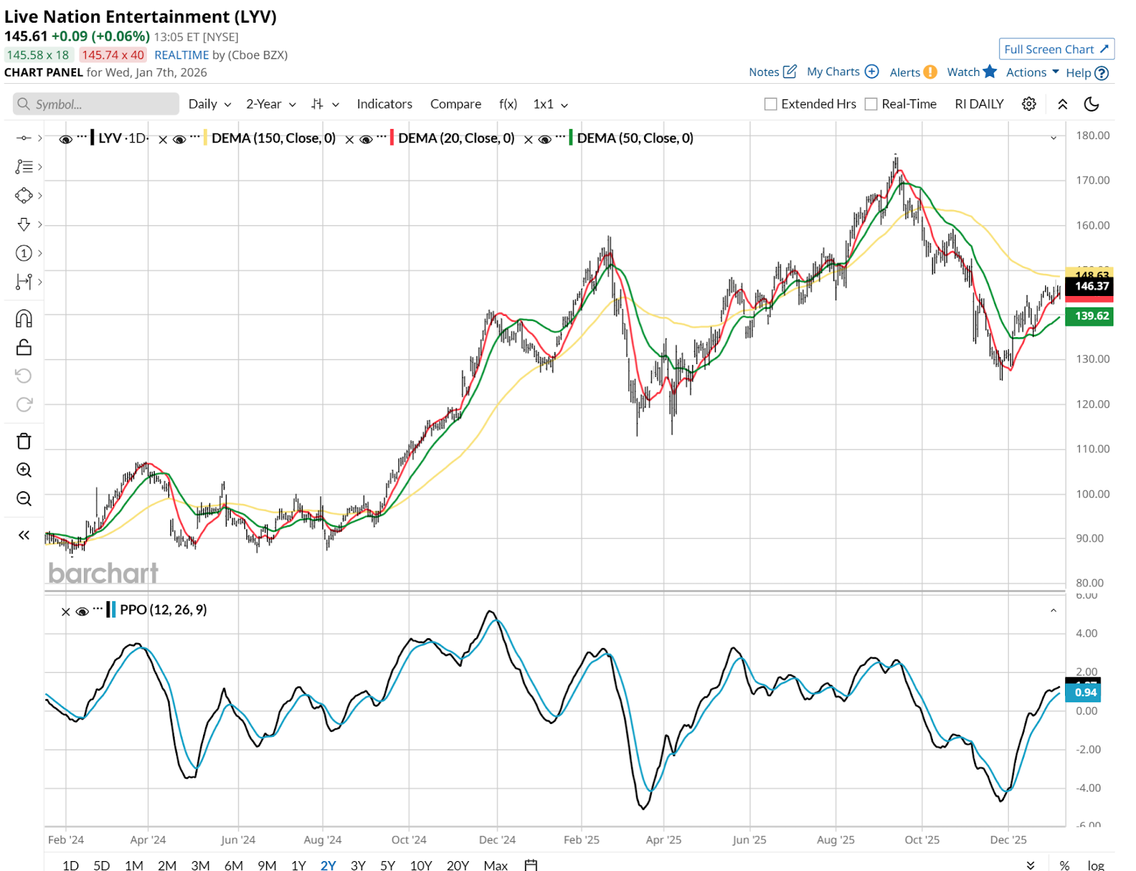 Live Nation Entertainment (LYV) looks better than the others, but as they say about a top player on a poor team, “we finished last with you, we can finish last without you.”