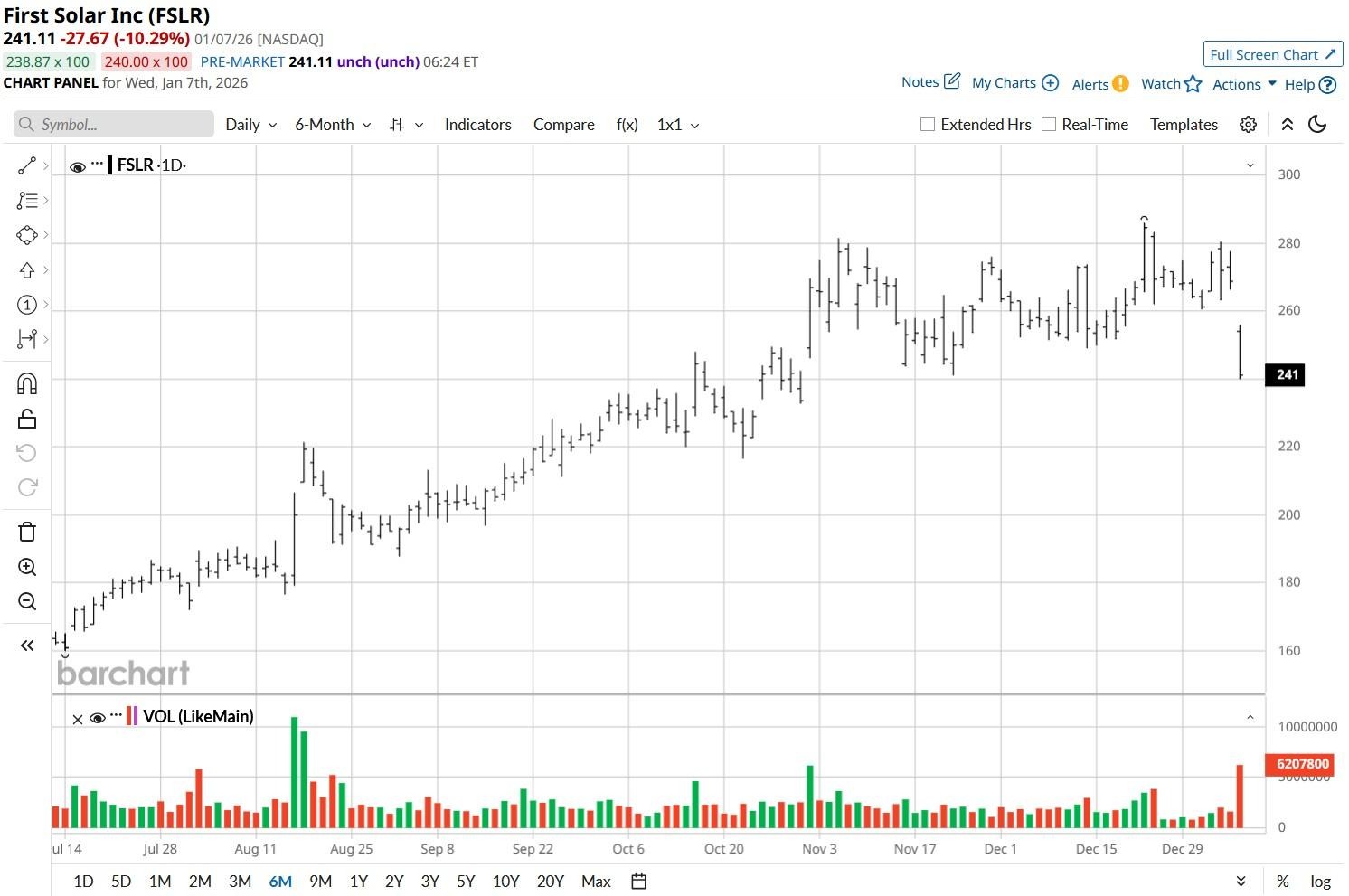 First Solar (FSLR) shares tanked more than 10% on Jan. 7 after senior Jefferies analyst Julien Dumoulin-Smith downgraded the Tempe-headquartered clean energy company to “Hold.”