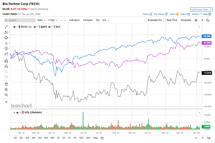 TECH stock has underperformed the S&P 500 Index’s ($SPX) 17% gains over the past 52 weeks, with shares down 14.1% during this period. Similarly, it underperformed the Health Care Select Sector SPDR Fund’s (XLV) 12.6% returns over the same time frame.