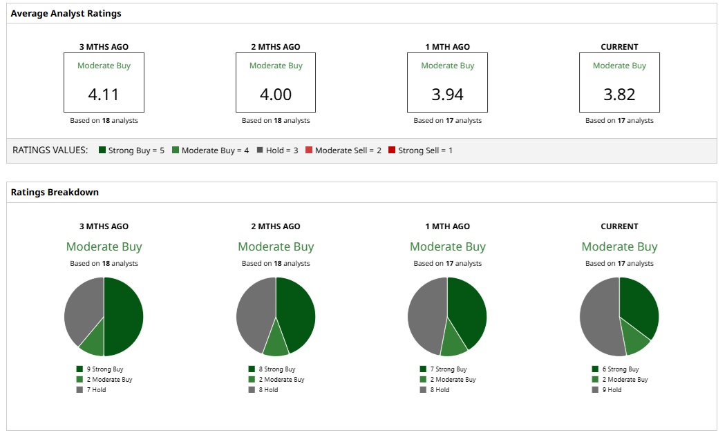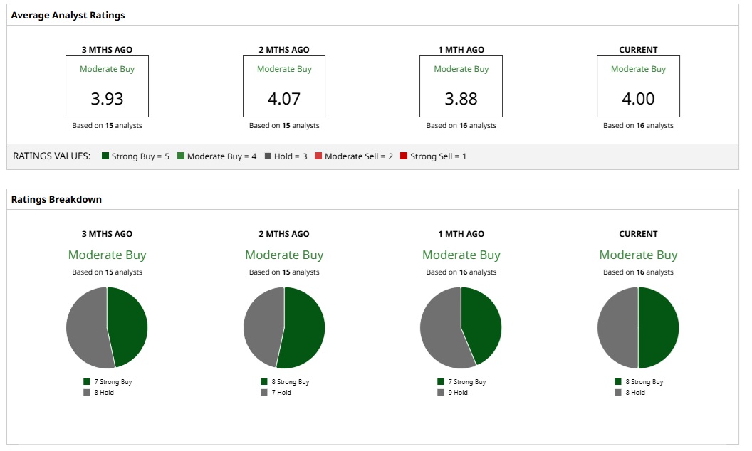 RIO stock has a “Moderate Buy” rating based on the consensus estimate of 16 analysts. However, the mean price target of $79.70 implies a downside potential of 5% from current prices.