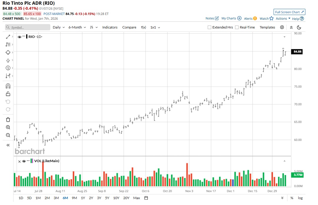 RIO stock has witnessed a meaningful rally of 44% in the last 52 weeks. Further, the stock offers an attractive forward dividend yield of 3.46%.