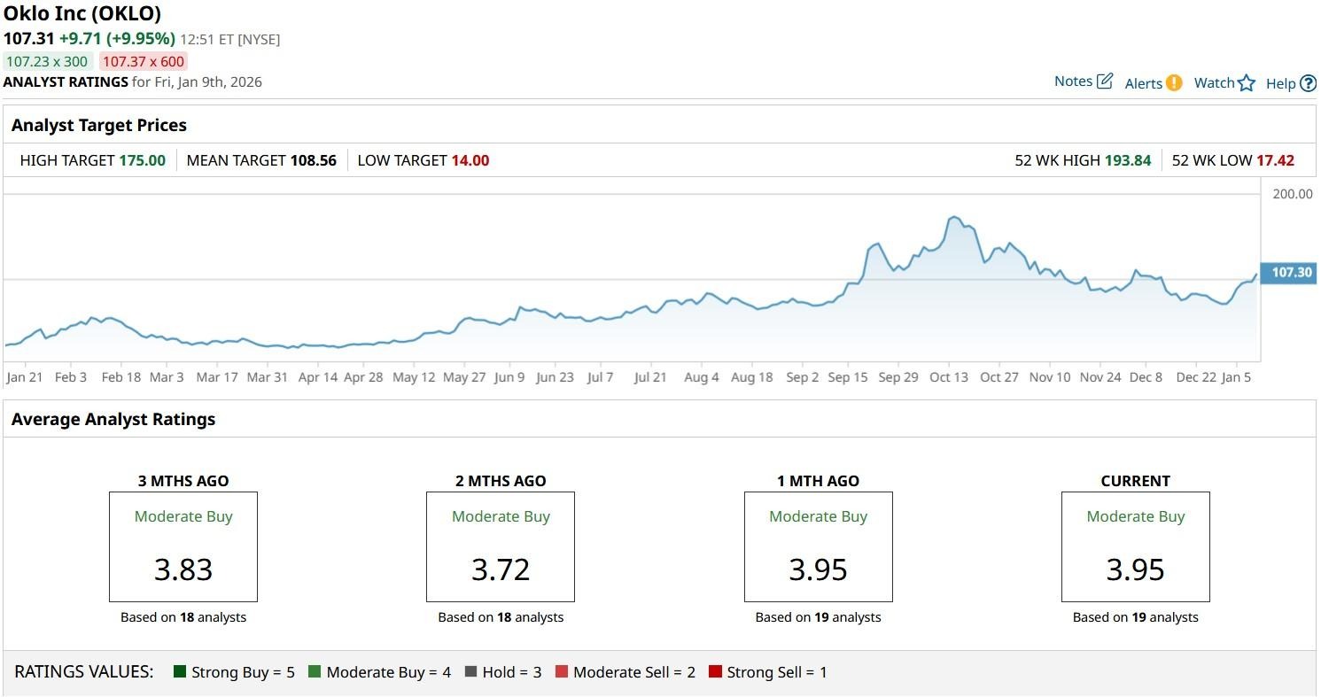 According to Barchart, the consensus rating on Oklo shares sits at “Moderate Buy” currently with price targets going as high as $175 indicating potential upside of another 70% from here.