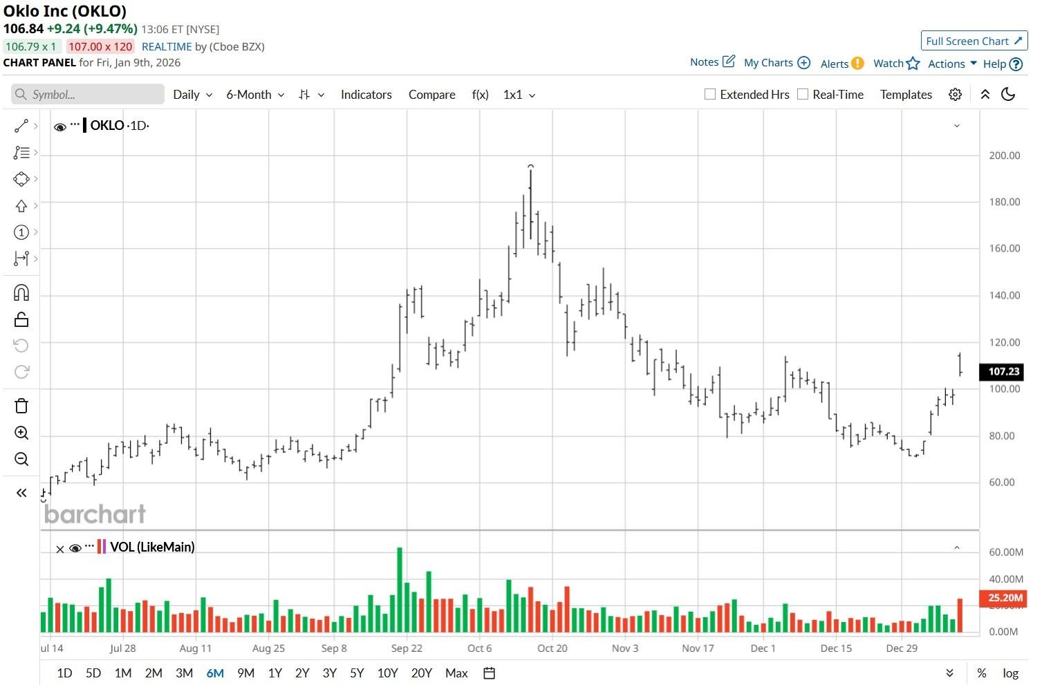 Oklo (OKLO) shares soared as much as 20% on Jan. 9 after hyperscaler Meta Platforms (META) agreed to support development of a 1.2-gigawatt nuclear power campus in Pike County, Ohio.