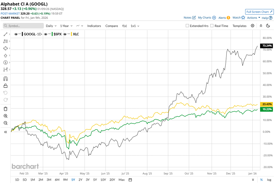 Alphabet’s leadership becomes even clearer within its sector. The State Street Communication Services Select Sector SPDR ETF (XLC) climbed 21.2% over the past year but showed only modest YTD gains, highlighting Alphabet’s sustained edge.