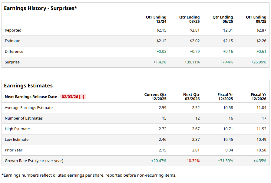 Looking at the full year, Wall Street expects fiscal 2025 diluted EPS of $10.58, marking a 31.6% year-over-year increase, while momentum is anticipated to continue into fiscal 2026 with projected EPS of $11.04, up 4.4% year over year.