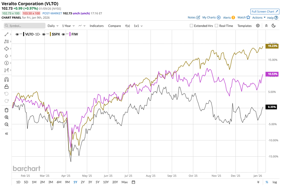 Despite this earnings trajectory, share-price performance has remained measured. VLTO stock has posted marginal gains over the past 52 weeks and is up nearly 3% year-to-date (YTD). By comparison, the S&P 500 Index ($SPX) has jumped 17.7% over the last 52 weeks and 1.8% YTD, creating a relative gap.