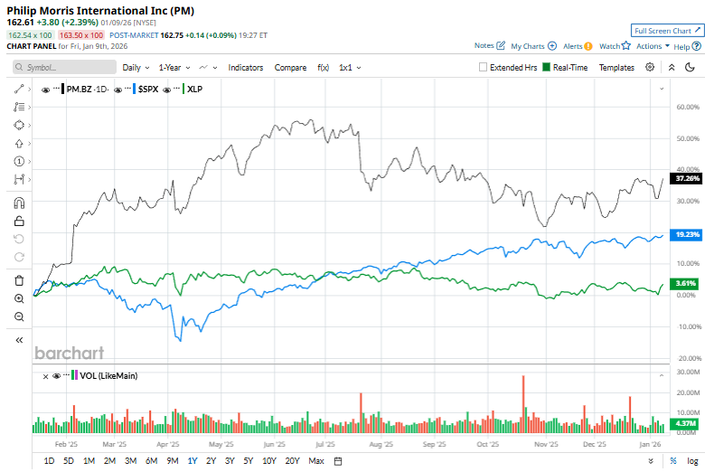 Shares of Philip Morris have surged 33.4% over the past 52 weeks, outperforming both the S&P 500 Index's ($SPX) 17.7% rise and the Consumer Staples Select Sector SPDR Fund’s (XLP) 2% rise over the same period.