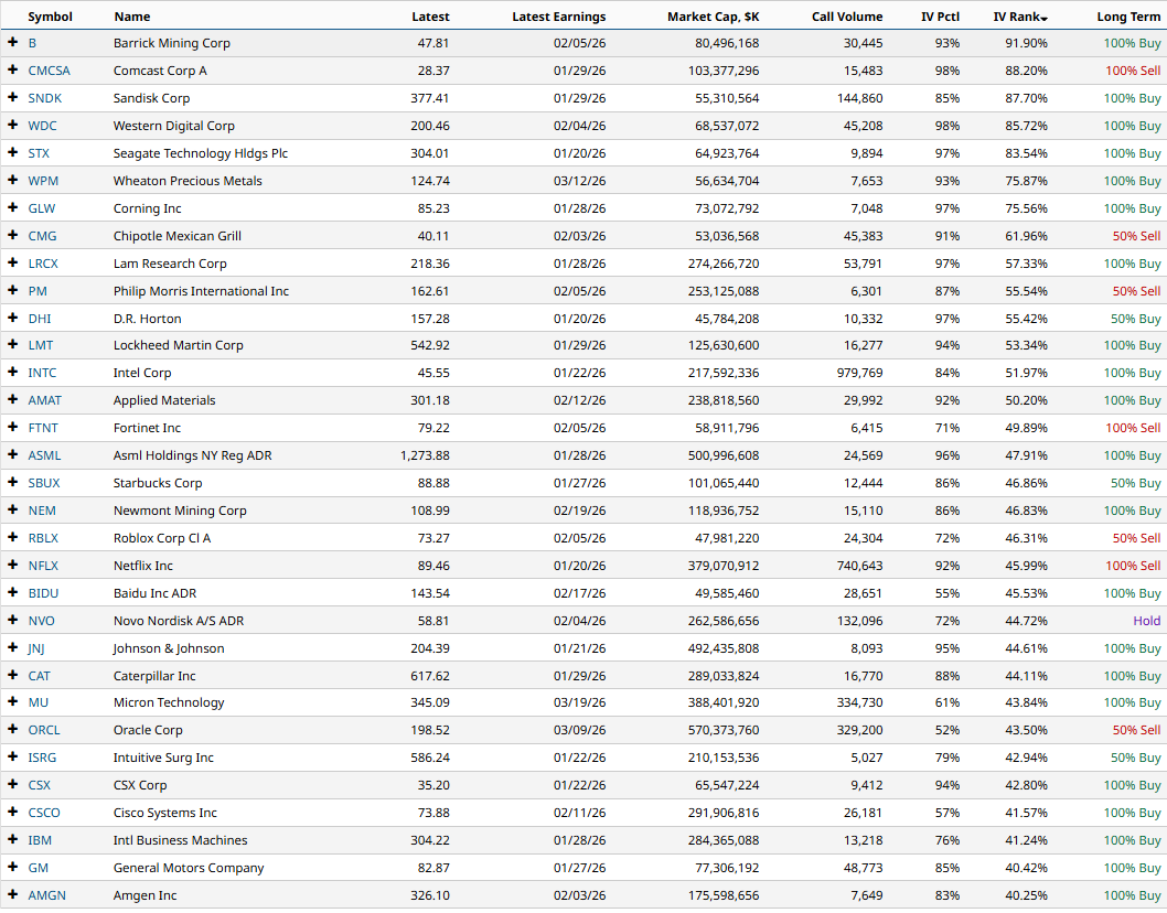 We can use Barchart’s Stock Screener to find other stocks with high implied volatility.