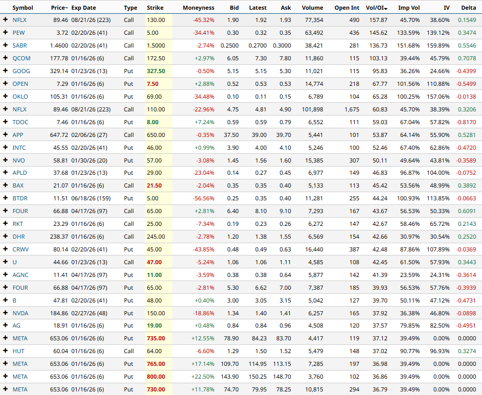 NFLX. GOOG, OPEN, OKLO, APP and INTC all experienced unusual options activity last week.