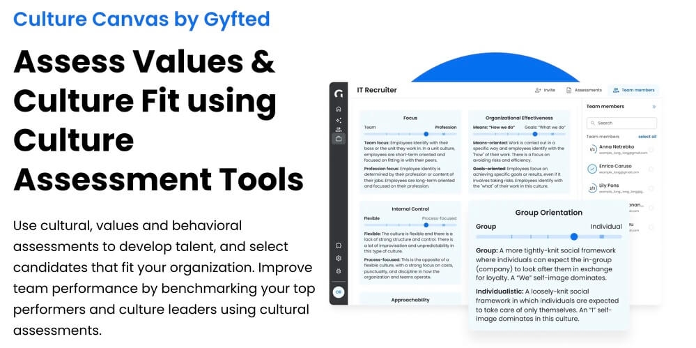 Having assessed over 800,000 test-takers since 2021, Gyfted's platform offers a complete library of scientifically validated assessments, including Personality Strengths based on the Big Five model, Core Values identification using Schwartz's methodology, Culture Preferences aligned with Hofstede's cultural dimensions, Motivational Drivers, Communication Styles, Cognitive Ability testing, Emotional Intelligence evaluation, Growth Mindset assessment, and Conflict Style analysis.
