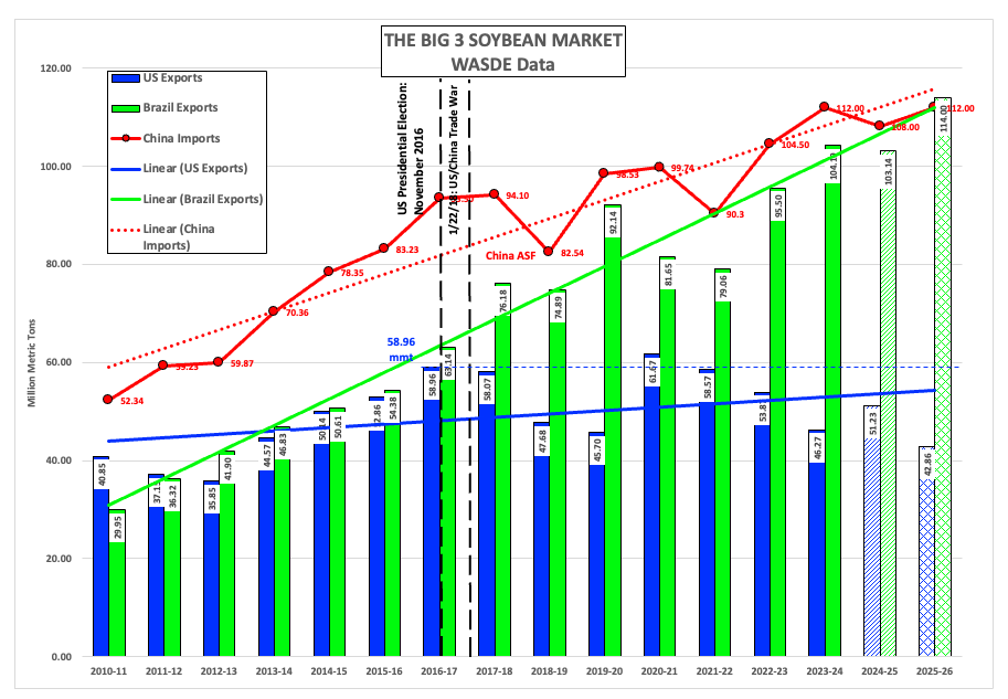 Soybeans: The soybean market was also in the red early Tuesday morning. As the financial news program unfolded, the second segment led with the latest social media post from the US president decreeing any country doing business with Iran will be subject to a 25% tariff. Guess who does business with Iran – that’s right, the world’s largest buyer of soybeans. The host of the program immediately followed with the key question: Does this mean tariffs on imports from China will see another 25% tariff? I’ll take this one step further: If the answer is yes, then how long until we see the cancelation of US soybean purchases China has on the books at this time. As of January 1, China reportedly held 5.7 mmt (as compared to 2.3 mmt the same week the previous year) while shipments to China were only 1.2 mmt (versus 16.7 mmt last year). A look back at USDA’s latest export demand guess of 1.575 bb (42.86 mmt) was down 60 mb (1.64 mmt) from last month but still 520 mb above the latest pace projection based on reported shipments through January 1. That is an issue the US market ($CNSI) will have to face over the coming weeks and months.
