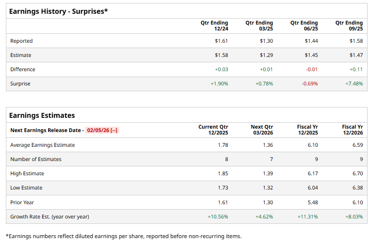 For fiscal 2025, analysts forecast the company to report an adjusted EPS of $6.10, an 11.3% rise from $5.48 in fiscal 2024. Moreover, adjusted EPS is anticipated to grow 8% year over year to $6.59 in fiscal 2026.