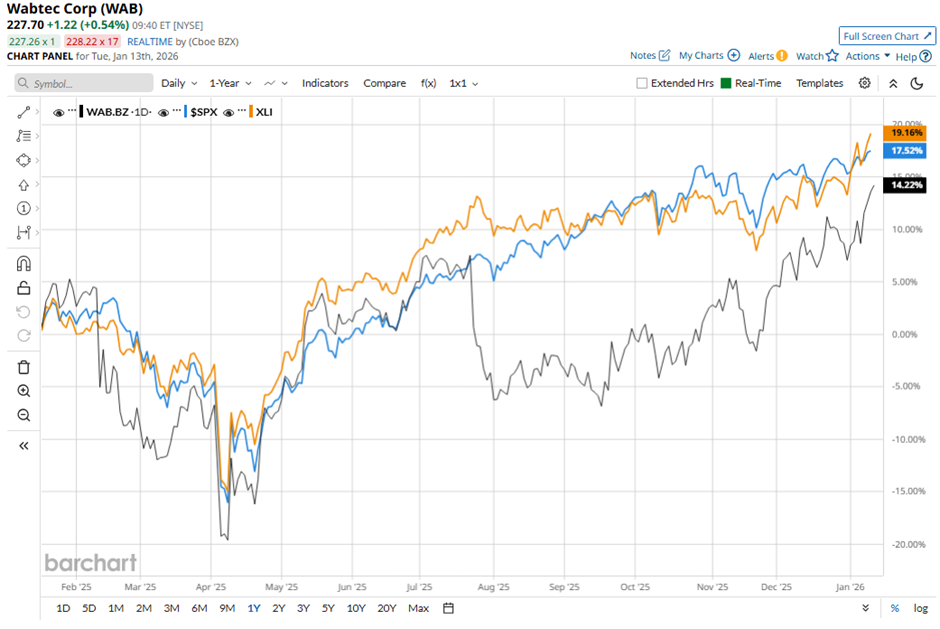 Shares of Westinghouse Air Brake Technologies have increased 19.9% over the past 52 weeks, slightly outperforming both the S&P 500 Index's ($SPX) 19.7% gain. However, the stock has lagged behind the State Street Industrial Select Sector SPDR ETF's (XLI) 23.4% return over the same period.