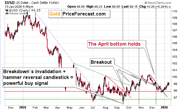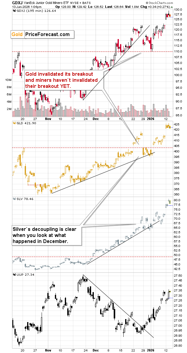 But if the USD Index is starting to rally here and CME is determined to keep raising margins for silver futures, silver is likely to decline before reaching this target – along with the rest of the precious metals sector.