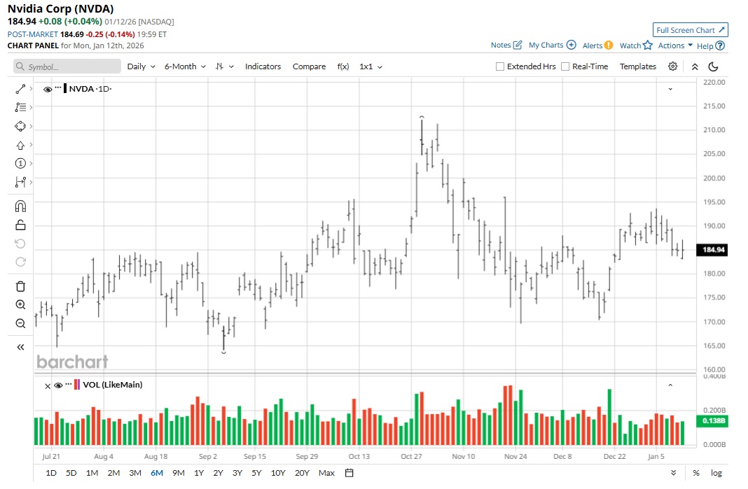 Backed by industry tailwinds, healthy growth, and swelling cash flows, NVDA stock has trended higher by about 12% in the past six months.