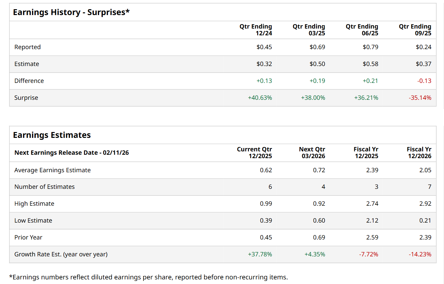 Valued at a market cap of $9.5 billion, MGM Resorts International (MGM) is a gaming and entertainment company based in Las Vegas, Nevada. It operates casino resorts that offer gaming, hotel, convention, dining, entertainment, retail, and other resort amenities, as well as online/digital games through its online platforms. The company is expected to announce its fiscal Q4 earnings for 2025 after the market closes on Wednesday, Feb. 11.