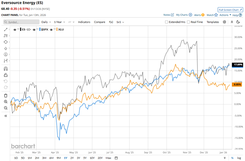 ES stock has soared 22.5% over the past 52 weeks, outperforming both the S&P 500 Index's ($SPX) 19.3% gain and the State Street Utilities Select Sector SPDR ETF's (XLU) 14.7% increase over the same period.