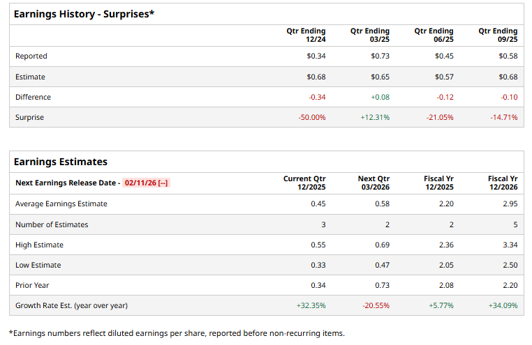 Dublin, Ireland-based Smurfit Westrock Plc (SW) manufactures, distributes, and sells containerboard, corrugated containers, and other paper-based packaging products. Valued at a market cap of $22.3 billion, the company primarily serves food and beverage, e-commerce, retail, consumer goods, industrial, and foodservice markets. It is expected to announce its fiscal Q4 earnings for 2025 soon.